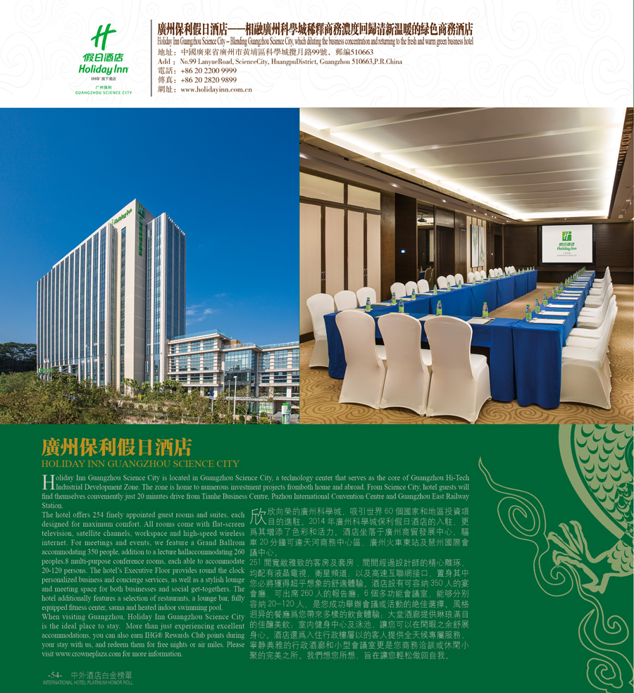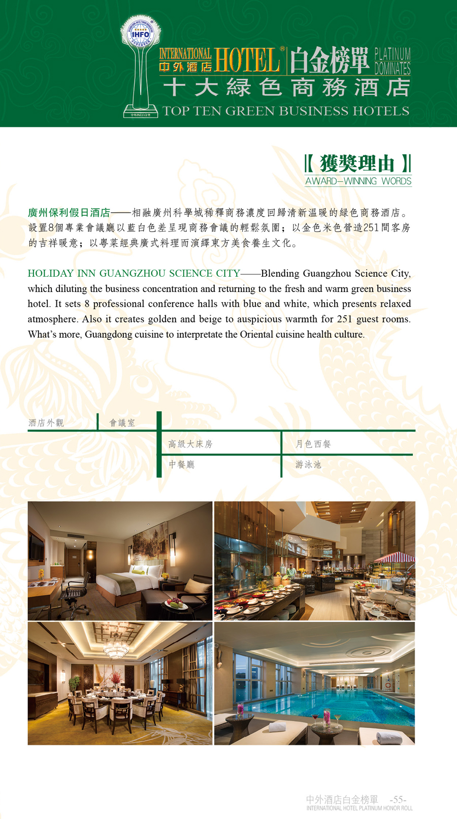 中外酒店十二届白金奖“十大绿色商务酒店”廣州保利假日酒店!